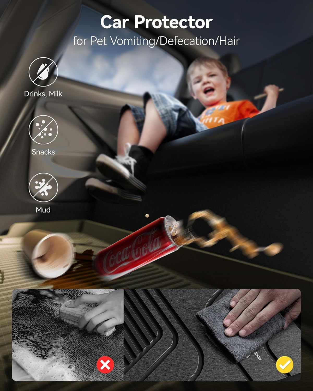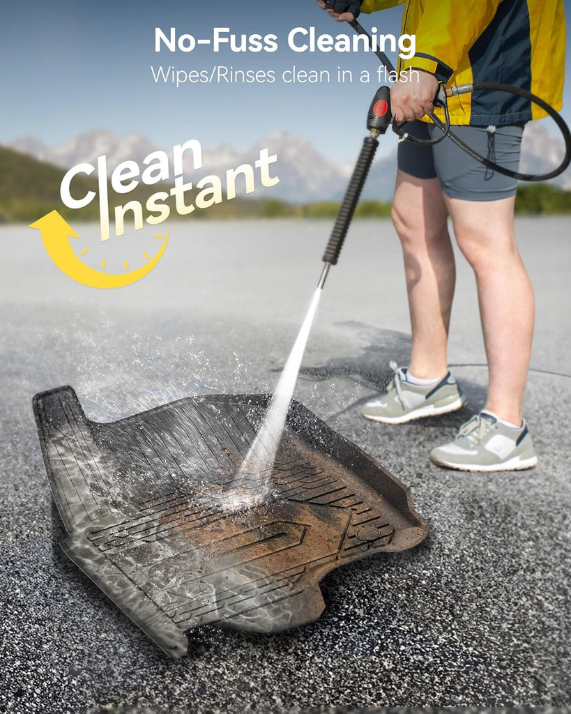 • سهولة التنظيف: عند التنظيف، ما عليك سوى نزع دعاسات الأرضية من السيارة، واشطفها بقوة بخرطوم، ثم جففها بقطعة قماش.