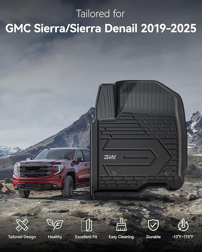استخدمنا تقنية مسح ضوئي للمركبات ثلاثية الأبعاد متطورة لالتقاط كل زاوية لتصميم دعاسات السيارات المخصصة التي تتناسب مع GMC Sierra، ذات تغطية كاملة بما يكفي للحفاظ على السيارة من الرمال والمطر بعيدًا عن الارضية الداخلية.