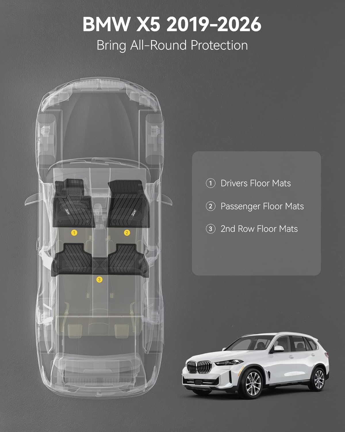 - Package Includes: 1st & 2nd Row Floor Mats Package