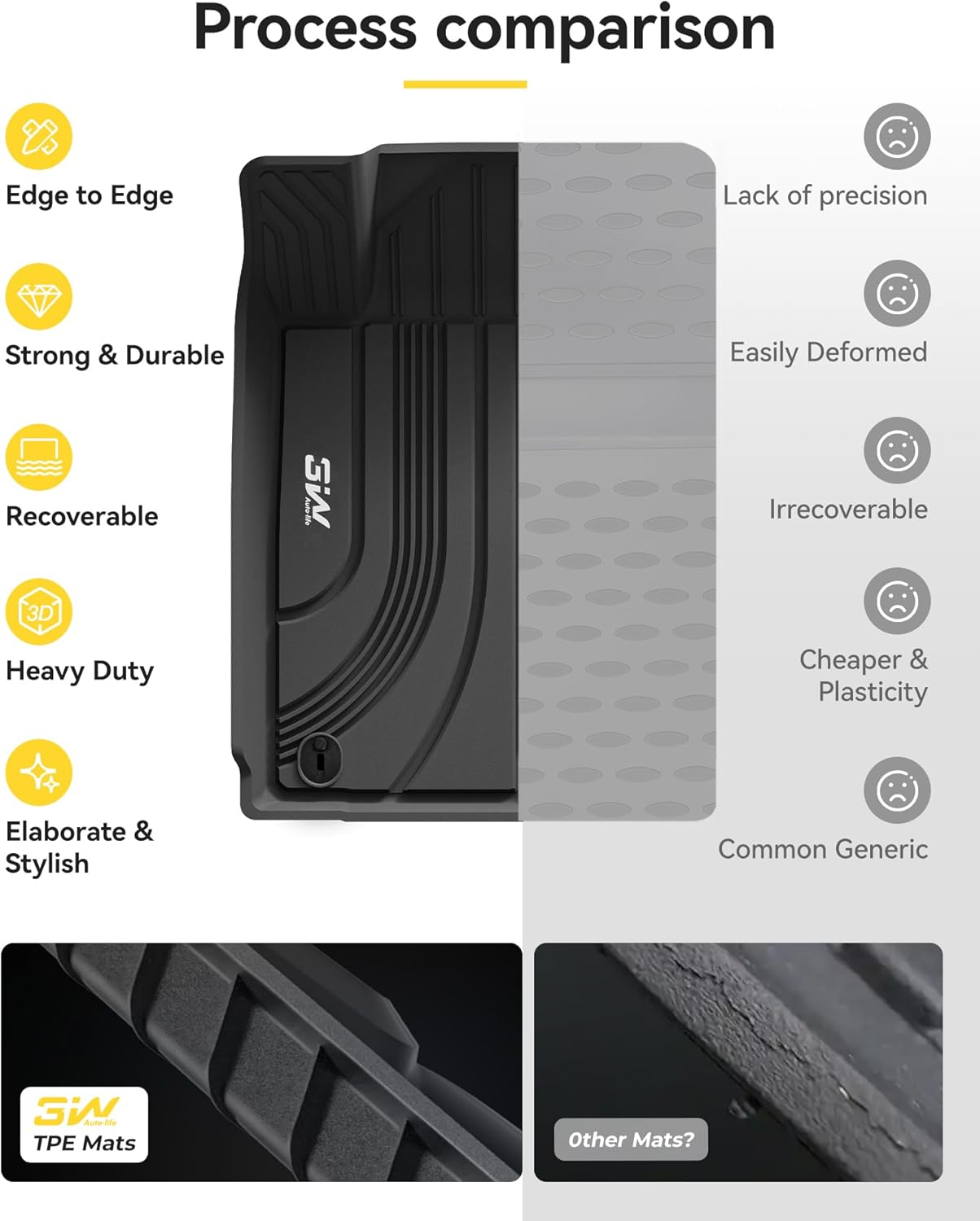 • All-Weather Protection: The custom designed channels and raised edge would effectively trap liquids, rain, slush, snow, or mud to keep your car and shoes clean.