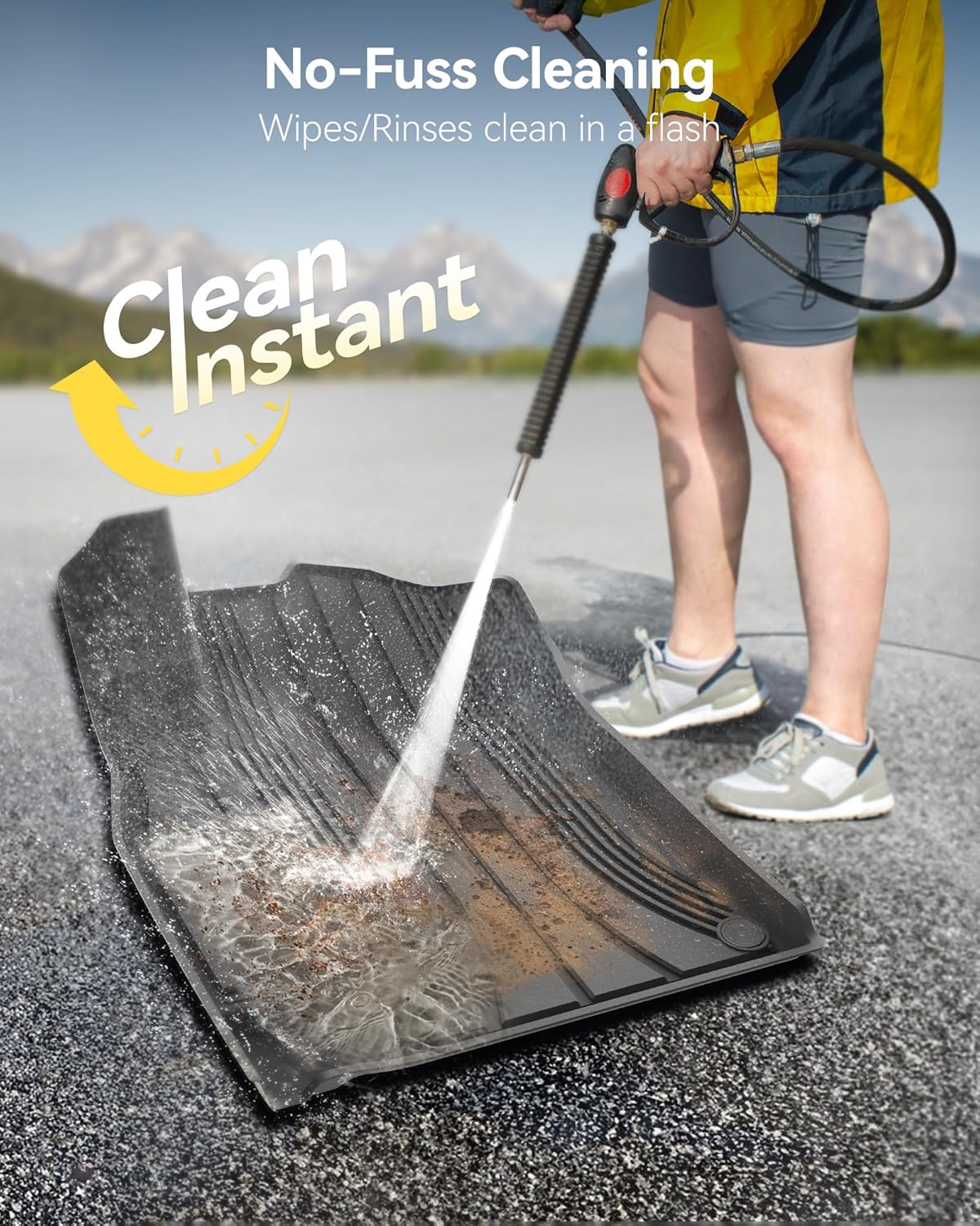 • Easy to Clean: When cleaning, just simply take off the floor liners from the car, rinse it vigorously with a hose, and then dry it with a cloth.