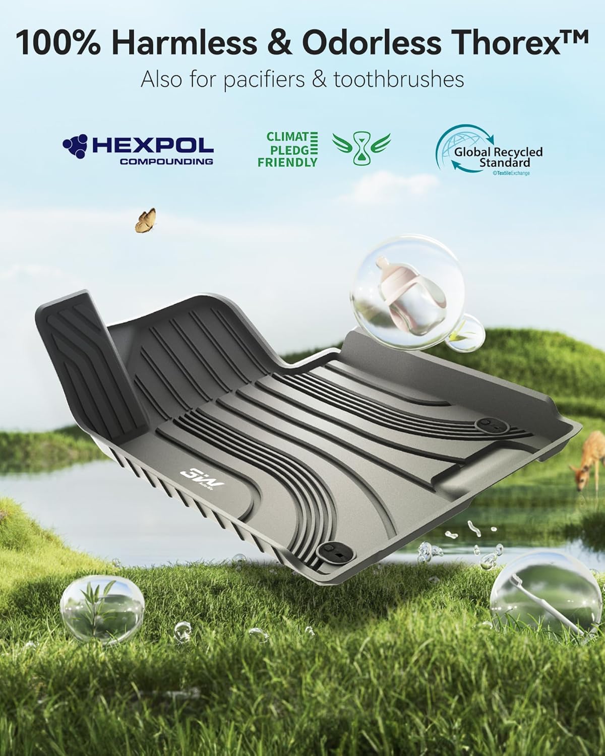Adrian floor liners are made from 100% Brand-new Thermoplastic Elastomer (TPE), which is extremely elastic and wearable. It has a comfortable feeling of feet, prevent accidental skidding even when your feet are wet. The unique groove design also increases the friction of the mat, maintaining excellent durability even with prolonged use