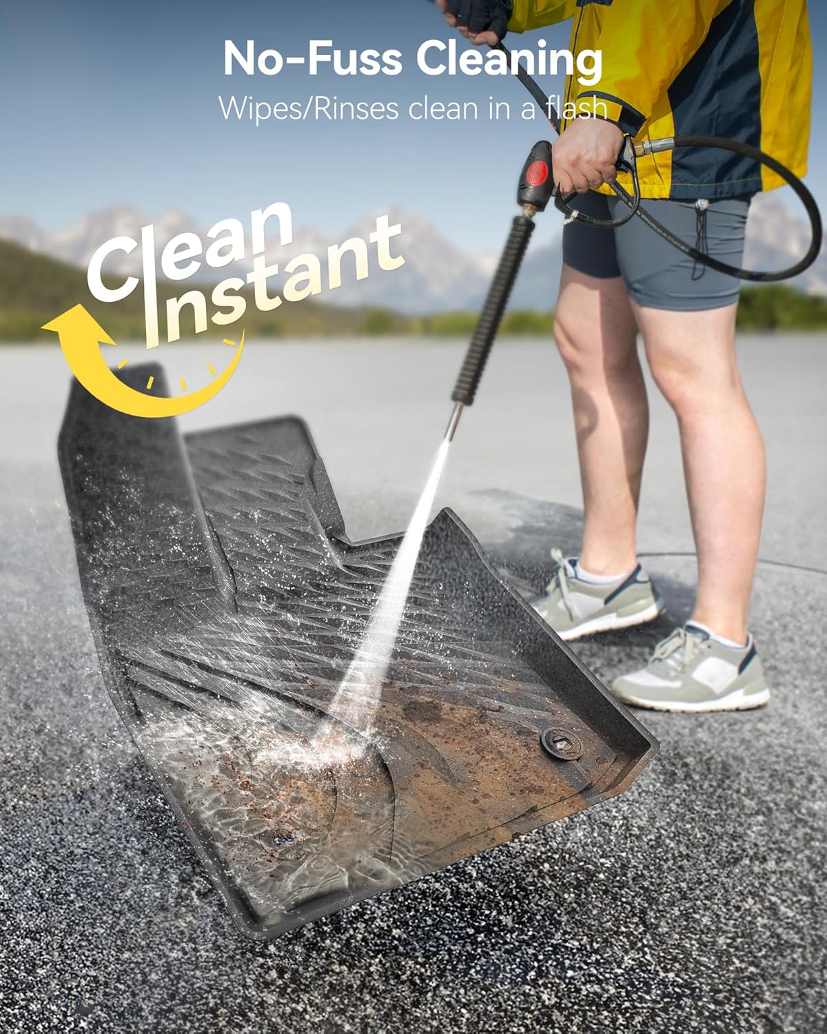 • Easy to Clean: When cleaning, just simply take off the floor liners from the car, rinse it vigorously with a hose, and then dry it with a cloth.