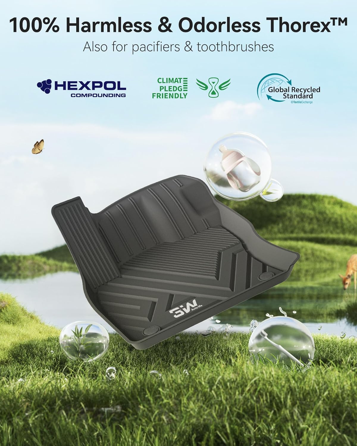 Low-density flexible TPE material is easy to clean and install. After hosing and drying with a dry towel, all the dirt will be removed, no matter with mud, slush, or dust on the liners. The liners will look brand new again