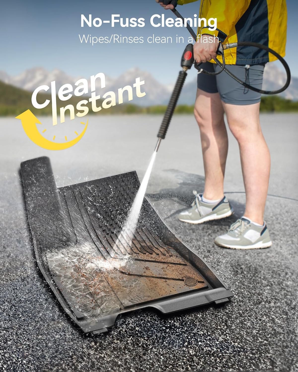 • Easy to Clean: When cleaning, just simply take off the floor liners from the car, rinse it vigorously with a hose, and then dry it with a cloth.