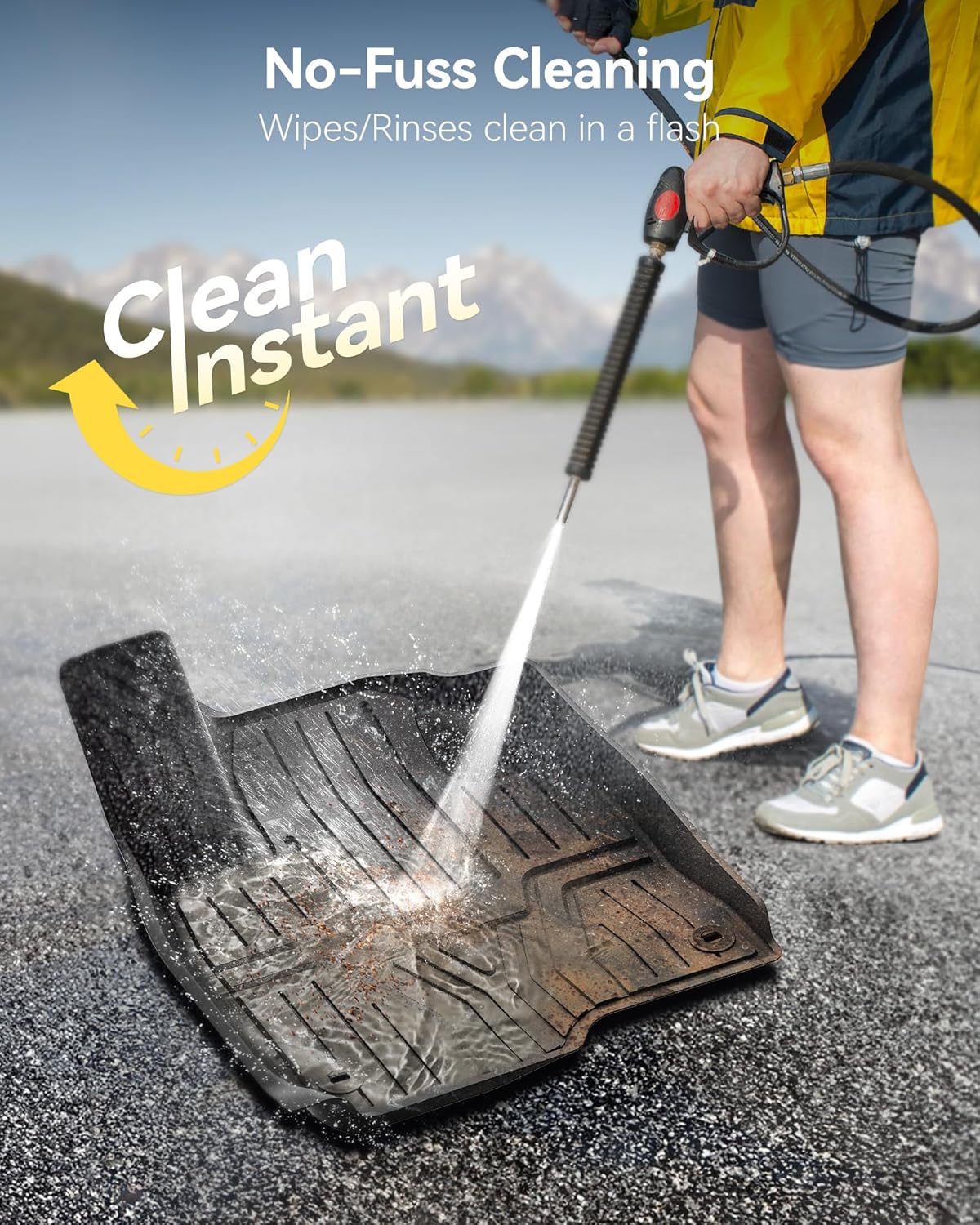 • Easy to Clean: When cleaning, just simply take off the floor liners from the car, rinse it vigorously with a hose, and then dry it with a cloth.