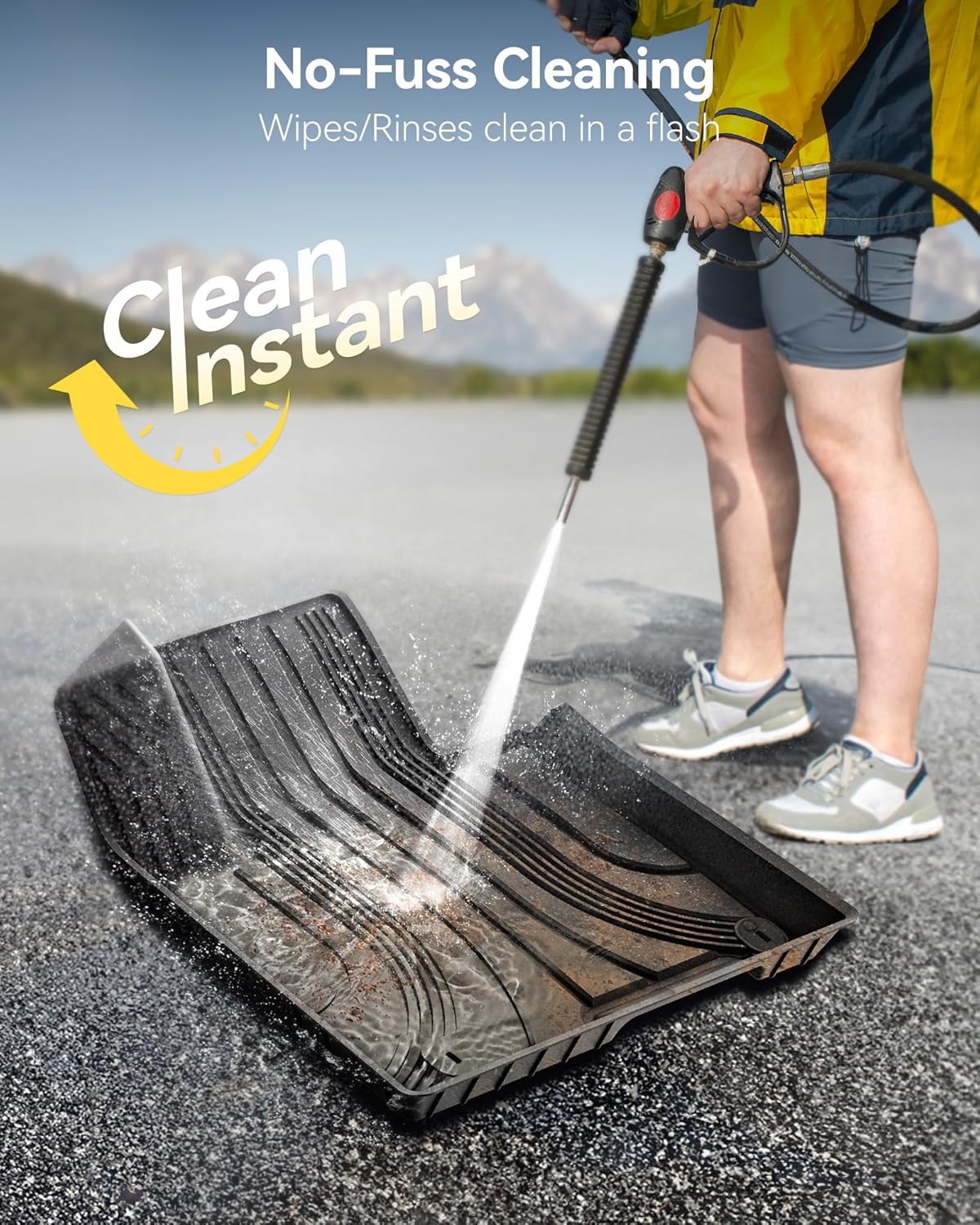 Low-density flexible TPE material is easy to clean and install. After hosing and drying with a dry towel, all the dirt will be removed, no matter with mud, slush, or dust on the liners. The liners will look brand new again