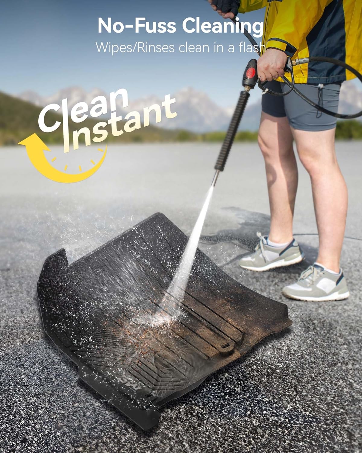 Low-density flexible TPE material is easy to clean and install. After hosing and drying with a dry towel, all the dirt will be removed, no matter with mud, slush, or dust on the liners. The liners will look brand new again