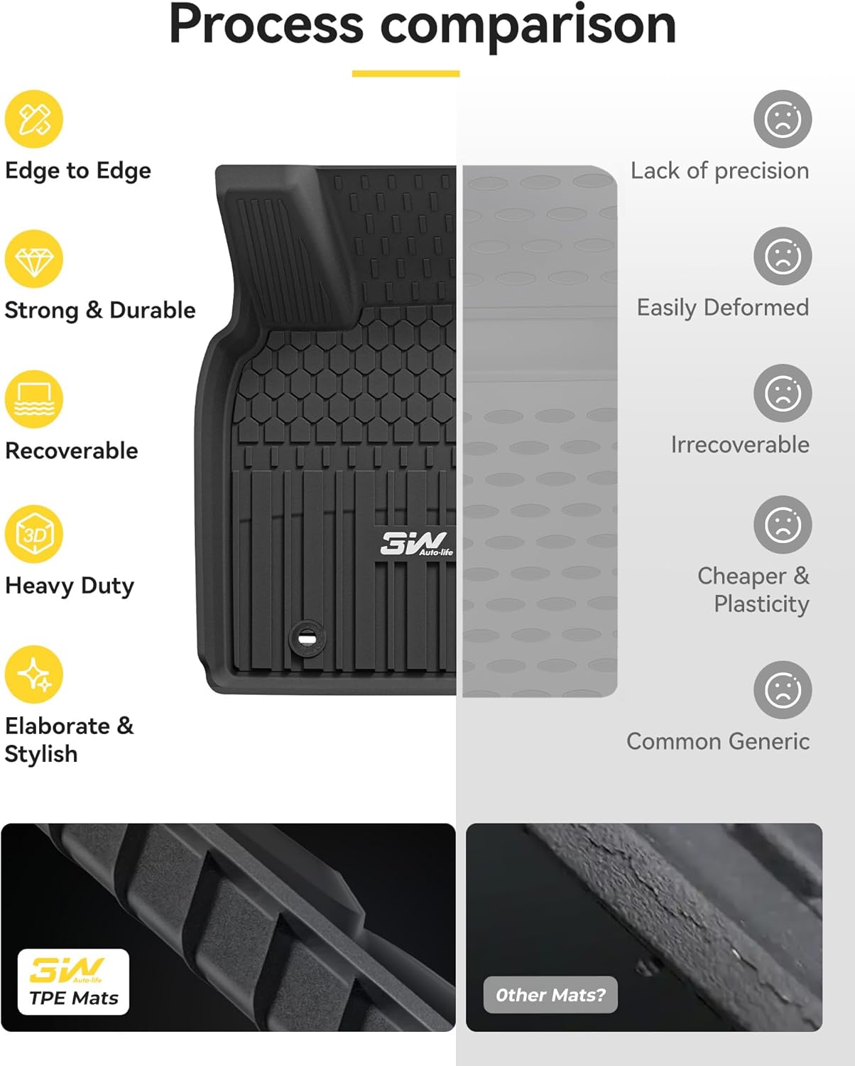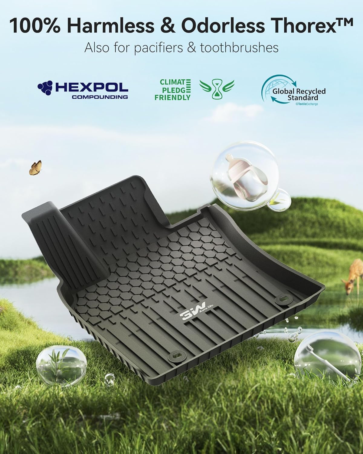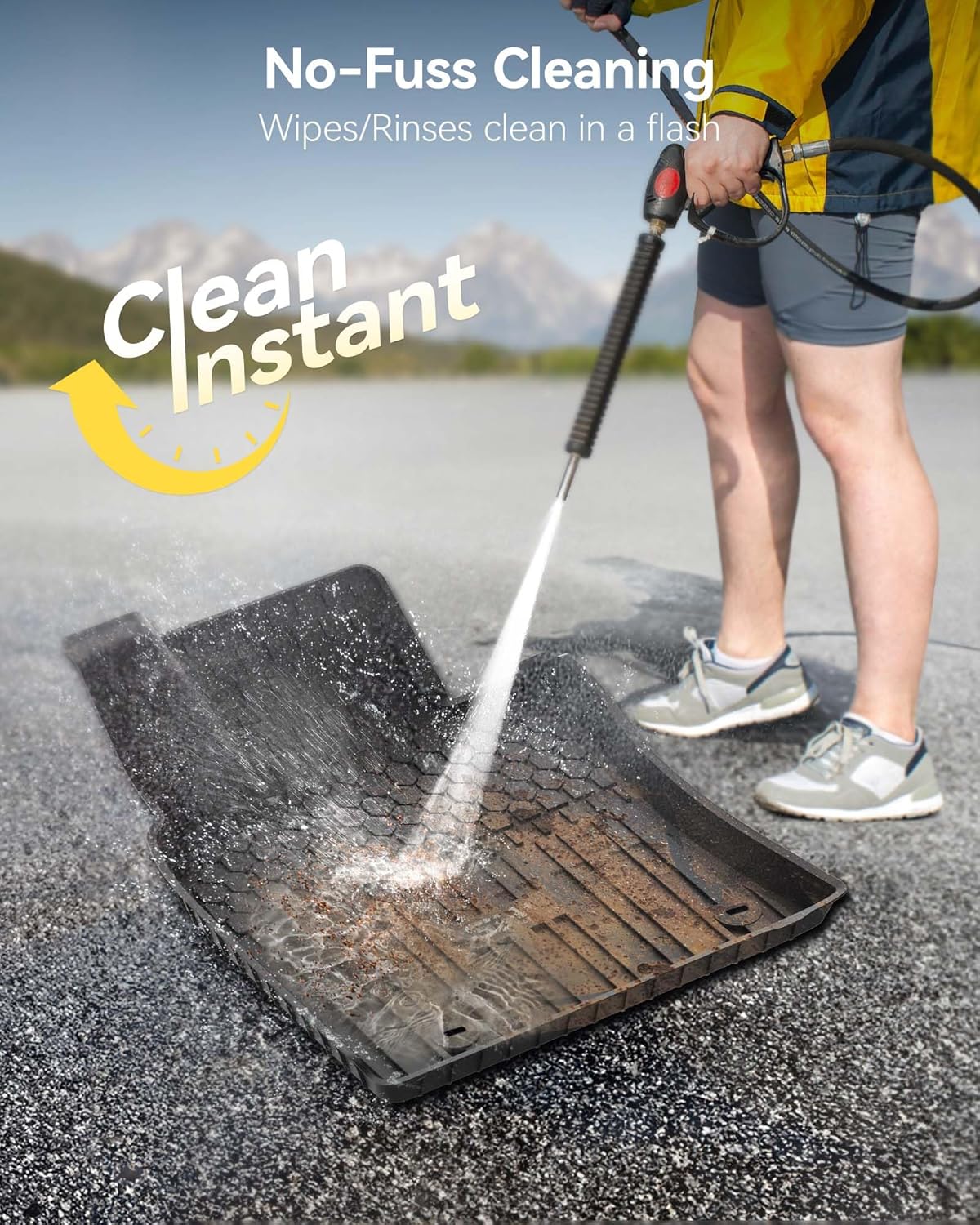Low-density flexible TPE material is easy to clean and install. After hosing and drying with a dry towel, all the dirt will be removed, no matter with mud, slush, or dust on the liners. The liners will look brand new again